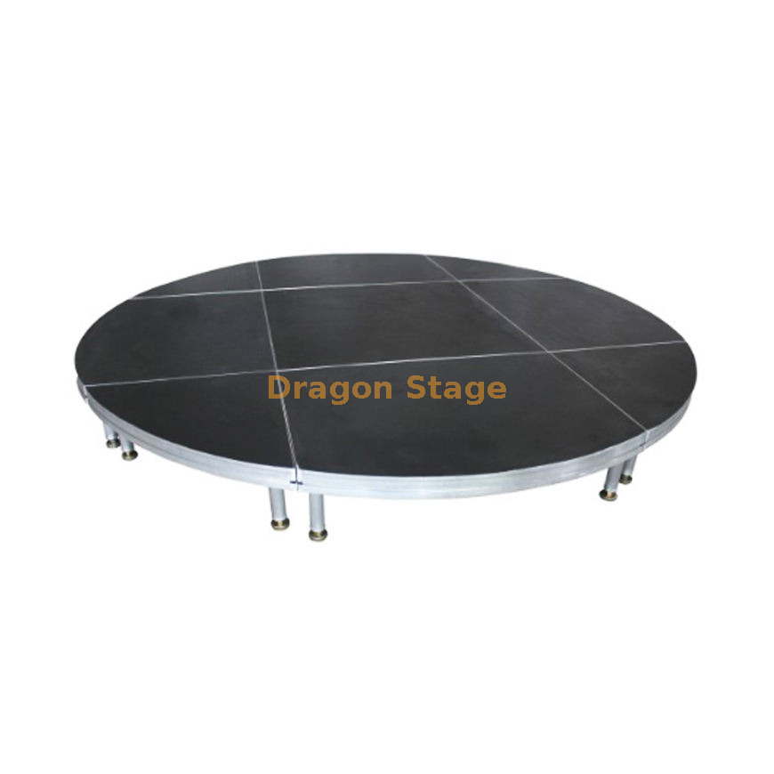 Built with high-strength aluminum frame and non-slip black plywood or carpet finish, it uses a smart quick-lock system that requires no tools and assembles in minutes. The compact 2.5-meter 3-m size comfortably accommodates 6–10 performers while creating an elegant, 360° visible focal point that looks stunning in photos and videos.