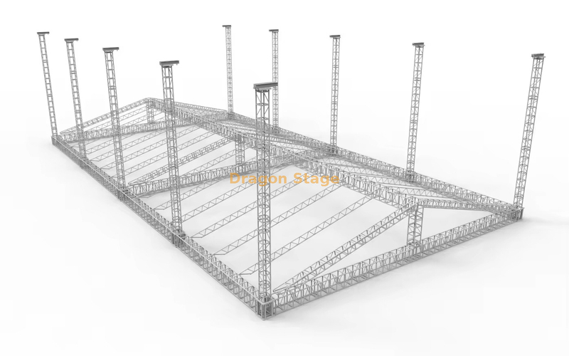 This heavy-duty, large-scale Flat Roof Aluminum Ground Support Truss System is designed to provide a massive, stable overhead structure for the most expansive professional events, including music festivals, trade shows, large exhibitions, and temporary venue coverings.