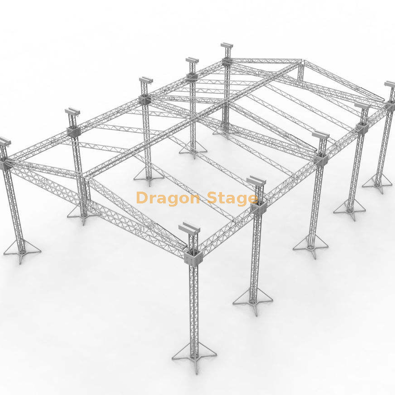 High Load Capacity: Utilizing a dense grid of heavy-duty aluminum box truss and multiple reinforced vertical columns, this structure is designed to support the heaviest loads, including large-scale lighting rigs, extensive sound systems (line arrays), and complex video screen arrays.