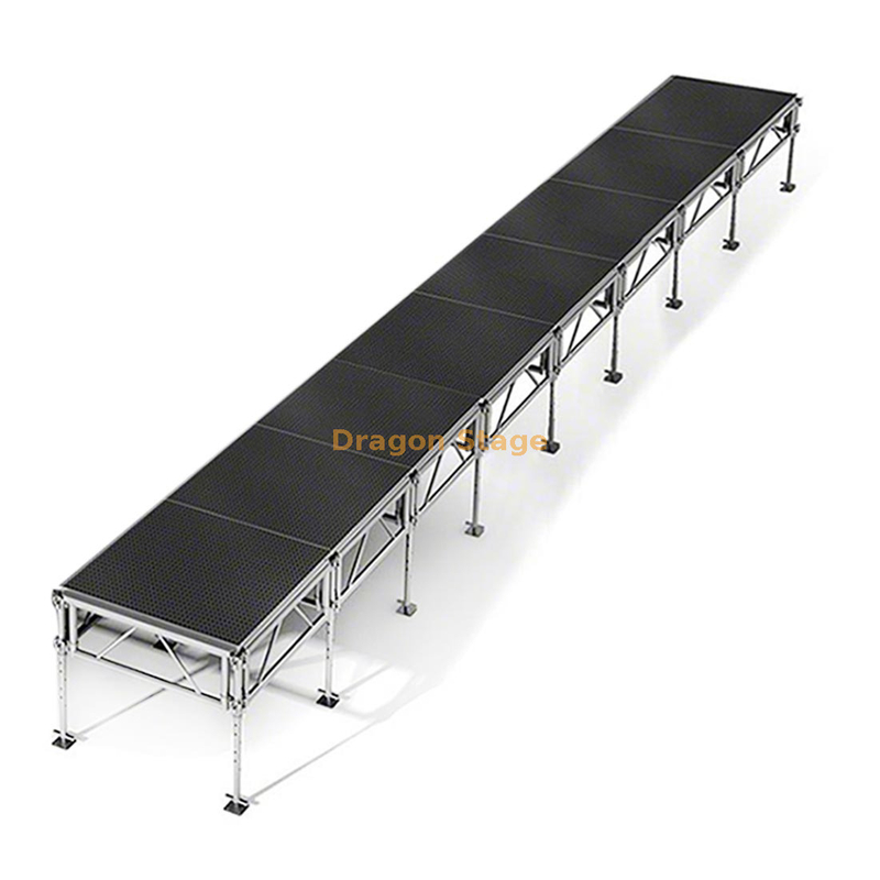 All-Terrain Versatility: Equipped with adjustable legs that can be set from 0.4m up to 2m, ensuring a perfectly level stage even on uneven ground, slopes, or curbs.