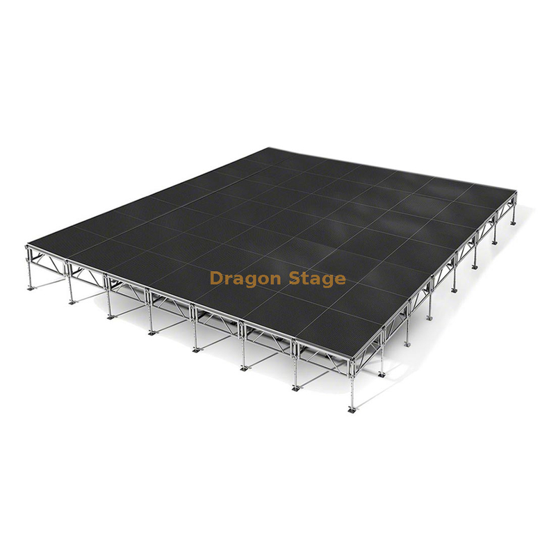 Modular Design: A modular design allows for flexibility in adjusting the stage size, shape, and height as needed. It also enables the addition of various accessories and components, such as ramps, stairs, guardrails, and skirting, to enhance functionality and aesthetics.