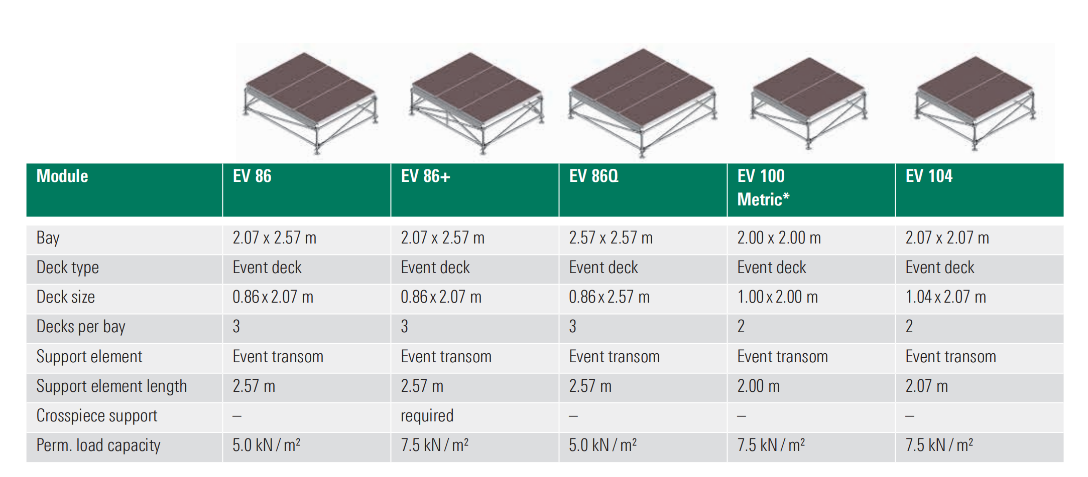 Layher Stages System Modules EV86, EV86+, EV86Q, EV100, EV104: Versatile, Modular Solutions for Temporary Structures
