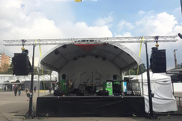 For heavier speaker systems and professional events, truss tower systems are used instead of crank stands.