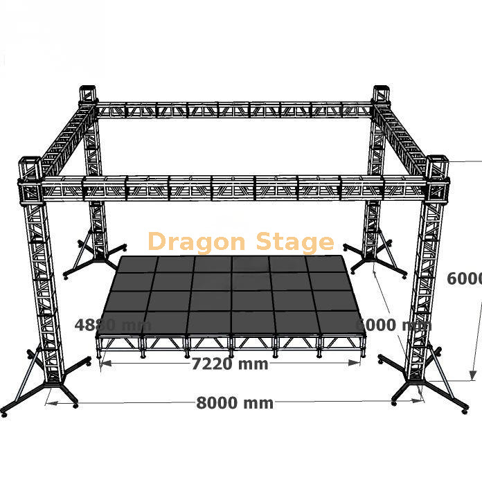 Expansive Coverage: The 8m x 6m x 6m aluminum truss structure provides significant overhead capacity for professional lighting rigs, sound systems, and visual displays.