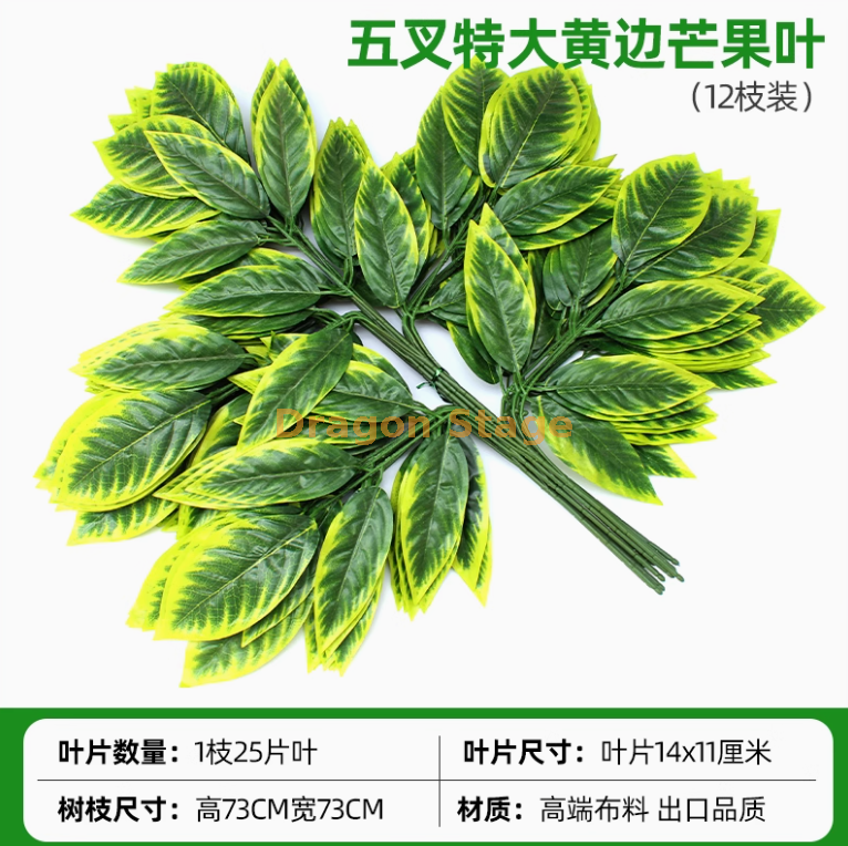 Simulated Banyan Tree Leaves, Red Maple Leaves, Ginkgo Leaves, Indoor Fake Branches, Light Yellow, Five Forked Yellow, Mango Leaves, 12 Branches