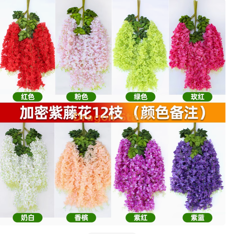 You are here:Home » Products » Artificial Flowers » Simulated bark, green plants, flowers, vines, leaves, wrapped in water pipes, decorated with purple wisteria flowers, enlarged and encrypted (12 branches), color notes